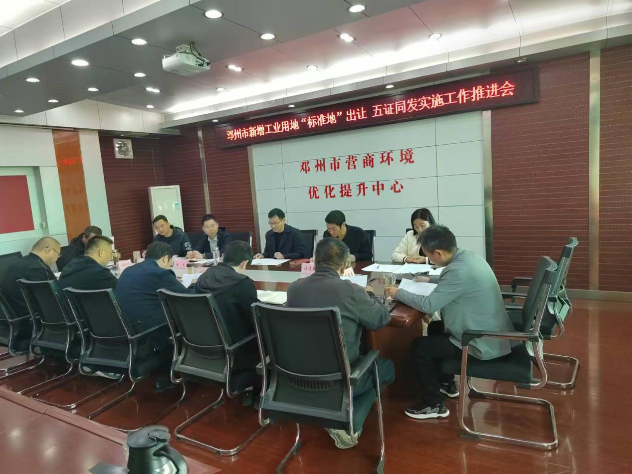 今年以来,河南省邓州市住建局牢固树立“好的营商环境就是生产力和竞争力”意识,坚持问题导向、目标导向、效果导向,主动学习先进地区的发展理念和经验做法,产生推动工业用地标准地“五证同发”审批改革的想法。11月6日,为探索工业用地标准地“五证同发”审批改革方案的可行性,邓州市住建局与审批各相关单位在营商办就相关方案展开了深入的讨论。
