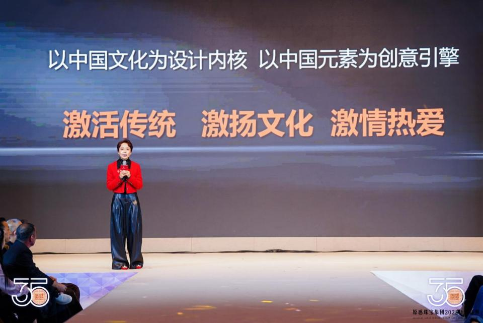 紧接着,原感镶嵌设计院院长周麟深入剖析了新品发布会背后所蕴含的精湛工艺与匠心独运之处。她表示,设计院经过多年筹备,对华夏祥瑞图腾、古典诗词、神话传说进行了潜心研究与创新解读,最终孕育出了这些兼具历史厚重感与现代设计感的华夏系列珠宝。无论是设计理念、材质选择还是工艺制作,都充分体现了东方文化精神,有力证明了中国人深植于血脉中的文化自信。